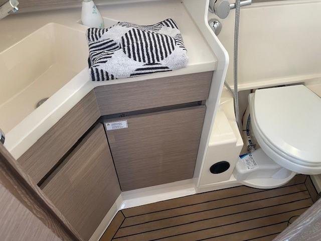 - Komfortpaket: Fußbodenbeleuchtung im Cockpit und am Niedergang, Exterior Licht Signatur, 2 Lüfter für Aufbauluken, indirekte Beleuchtung in Salon und Kabinen LED Deckenbeleuchtung in Salon und Eignerkabine, Cockpitpolster dark grey, Rollo Set mit Fliegengitter für Decksluken, Rollos für Rumpffenster, Faltplissees für seitliche Kajütfenster