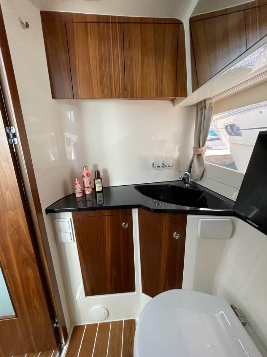 - Komfortpaket: Fußbodenbeleuchtung im Cockpit / am Niedergang, 2 Lüfter für Aufbauluken, Fußbodenbeleuchtung im Salon, indirekte Beleuchtung in Salon und Kabinen, LED Deckenbeleuchtung im Salon und Eignerkabine dimmbar, SLS - Scenario Licht System - Touch Screen Controller und Dimmer im Salon und Vorschiffskabine, Cockpitpolster dark grey, Rolloset mit Fliegengitter für Decksluken, Rollos für Rumpffenster, Faltplissees für seitliche Kajütdachfenster