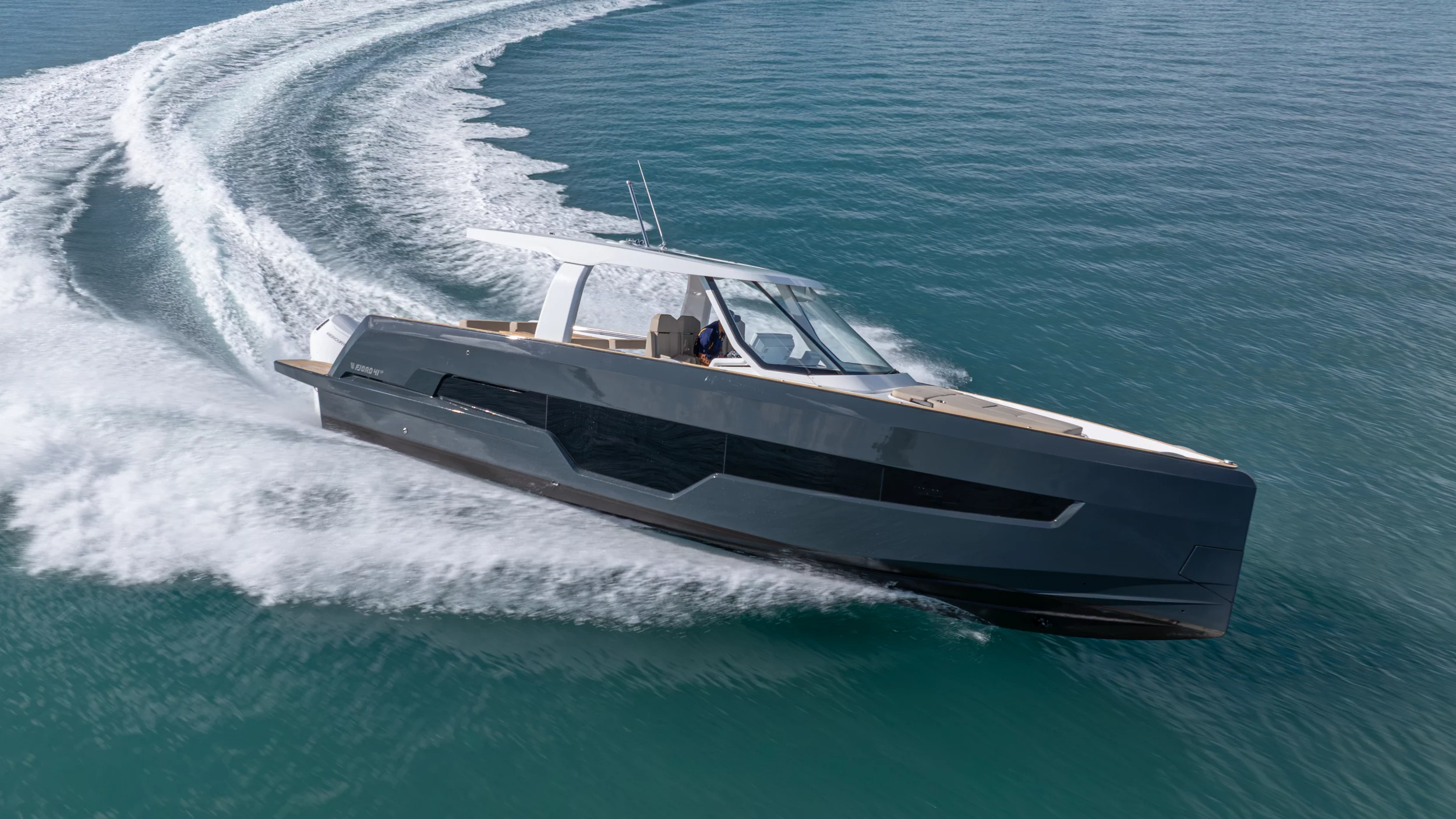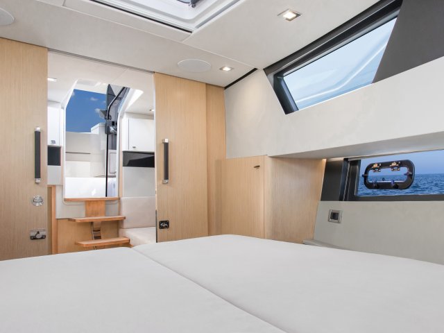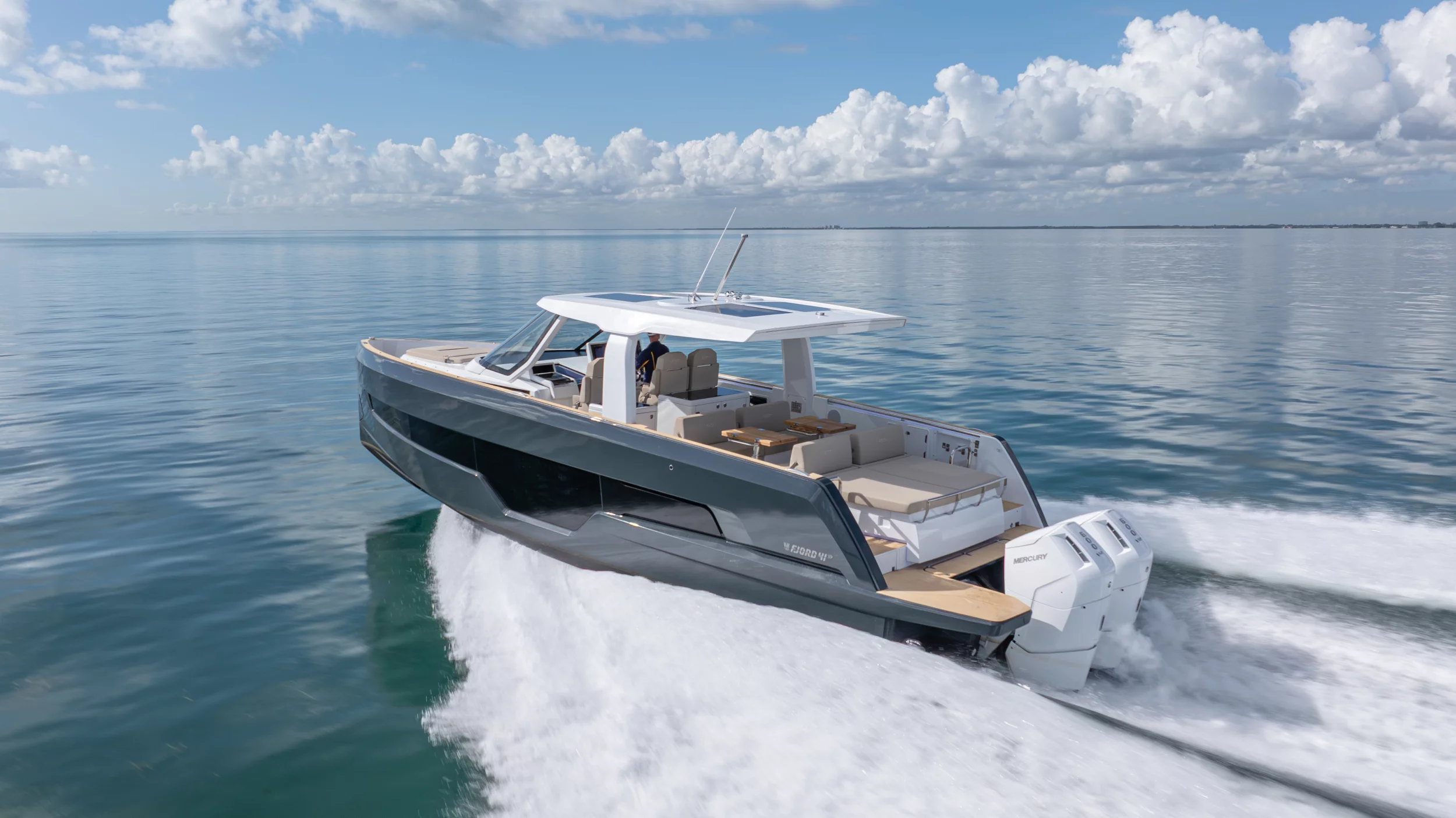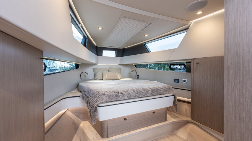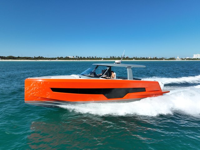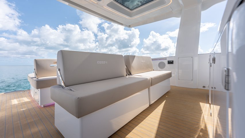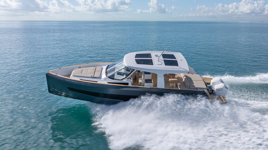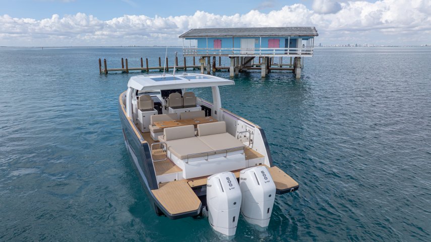 Ihre einzigartige Kombination aus Leistung, Komfort und ikonischem Design aus der Feder des renommierten Yachtdesigners Patrick Banfield macht die neue FJORD 41 XP zum absoluten Highlight auf dem Wasser. Die zwei 600 PS starken V12-Mercury-Verado-Außenbordmotoren der Yacht sorgen für eine atemberaubende Beschleunigung und beeindruckende Geschwindigkeiten von über 40 Knoten. Moderne Navigationsgeräte und eine intelligente Lenkung machen das Manövrieren einfach und intuitiv. Selbst bei voller Fahrt schützten das charakteristische T-Top und verschiedene Windschutzscheiben-Optionen vor den Elementen. Neben der imposanten Power bietet die Yacht ein unvergleichliches Raumangebot und maximale Bewegungsfreiheit an Deck. Das geräumige Cockpit mit seiner bequemen Lounge und zwei großzügigen Tischen schafft den perfekten Rahmen für einen gemütlichen Sundowner oder eine glamouröse Cocktailparty unter der Sonne. Die großen Rumpffenster sorgen nicht nur für einen modernen Look, sondern fluten das Innere der Yacht mit viel natürlichem Licht. Das Interior der 41-Fuß-Yacht beeindruckt zudem mit einer Auswahl von 20 Layoutvarianten. So können Sie Ihren ganz persönlichen Stil verwirklichen. Erleben Sie den Reiz der Geschwindigkeit und ein Höchstmaß an Individualität auf der brandneuen FJORD 41 XP!