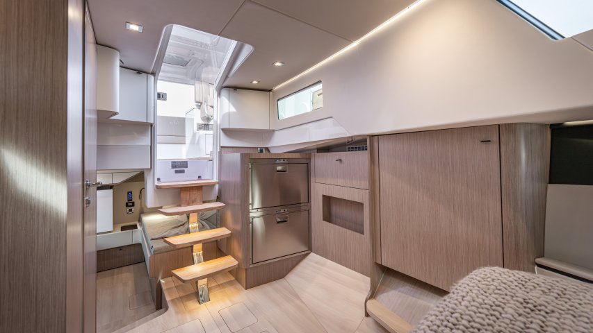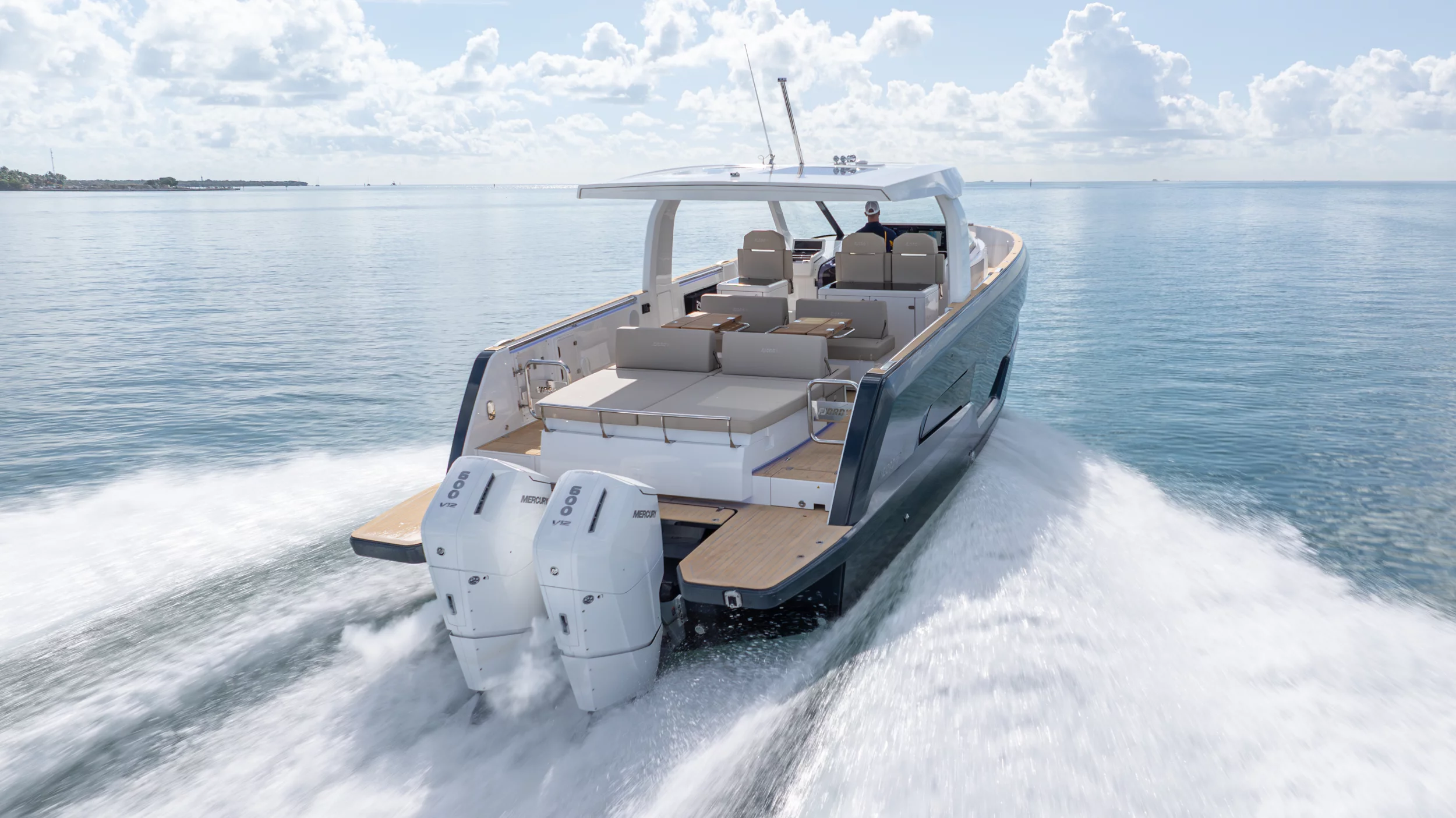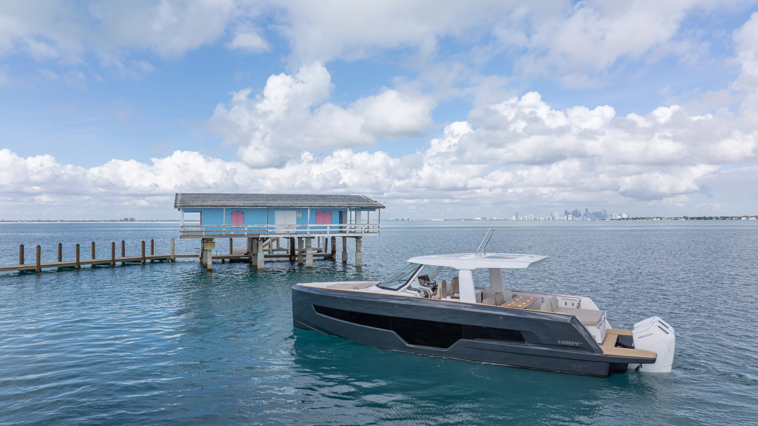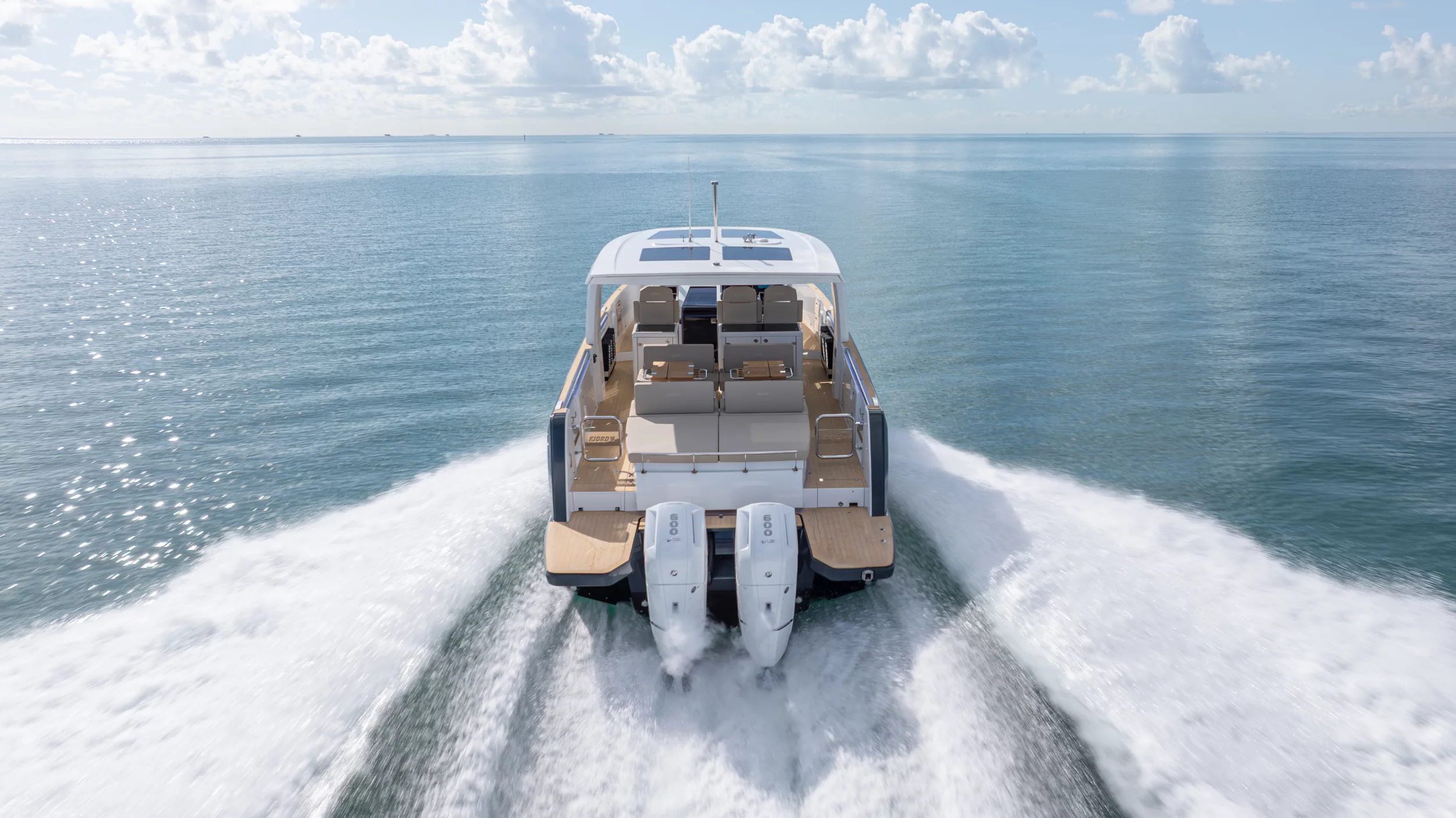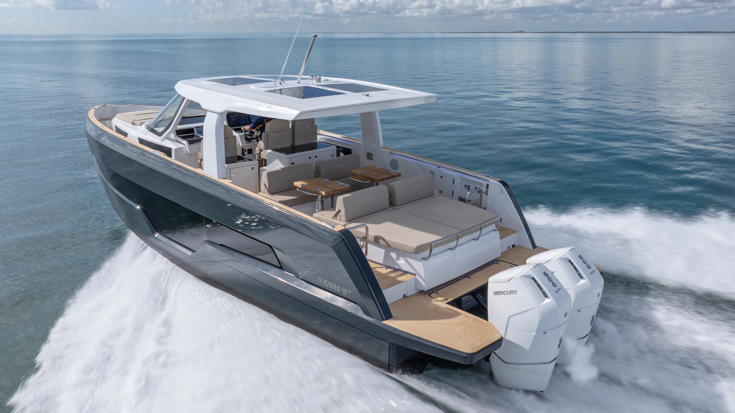 Ihre einzigartige Kombination aus Leistung, Komfort und ikonischem Design aus der Feder des renommierten Yachtdesigners Patrick Banfield macht die neue FJORD 41 XP zum absoluten Highlight auf dem Wasser. Die zwei 600 PS starken V12-Mercury-Verado-Außenbordmotoren der Yacht sorgen für eine atemberaubende Beschleunigung und beeindruckende Geschwindigkeiten von über 40 Knoten. Moderne Navigationsgeräte und eine intelligente Lenkung machen das Manövrieren einfach und intuitiv. Selbst bei voller Fahrt schützten das charakteristische T-Top und verschiedene Windschutzscheiben-Optionen vor den Elementen. Neben der imposanten Power bietet die Yacht ein unvergleichliches Raumangebot und maximale Bewegungsfreiheit an Deck. Das geräumige Cockpit mit seiner bequemen Lounge und zwei großzügigen Tischen schafft den perfekten Rahmen für einen gemütlichen Sundowner oder eine glamouröse Cocktailparty unter der Sonne. Die großen Rumpffenster sorgen nicht nur für einen modernen Look, sondern fluten das Innere der Yacht mit viel natürlichem Licht. Das Interior der 41-Fuß-Yacht beeindruckt zudem mit einer Auswahl von 20 Layoutvarianten. So können Sie Ihren ganz persönlichen Stil verwirklichen. Erleben Sie den Reiz der Geschwindigkeit und ein Höchstmaß an Individualität auf der brandneuen FJORD 41 XP!