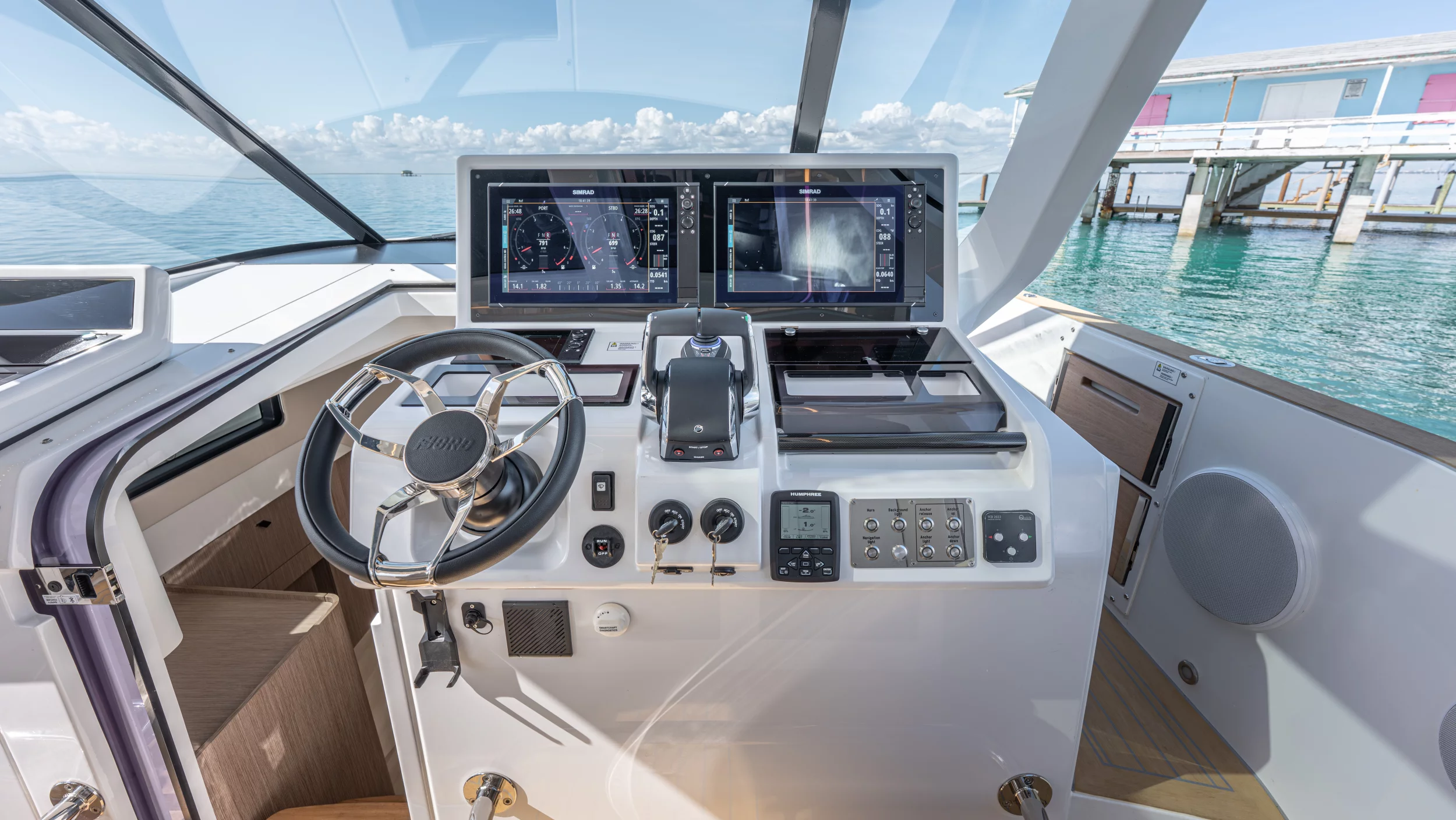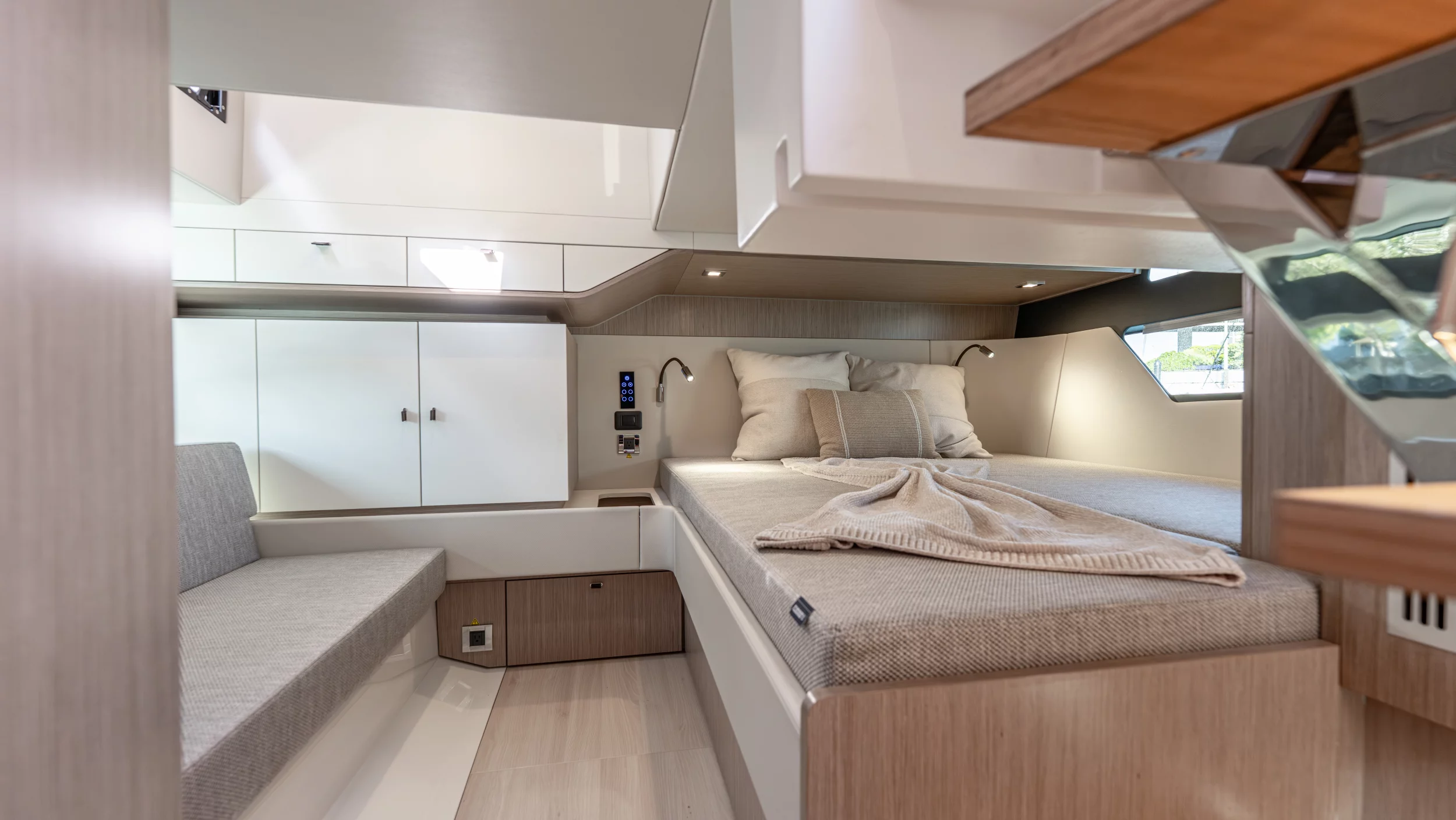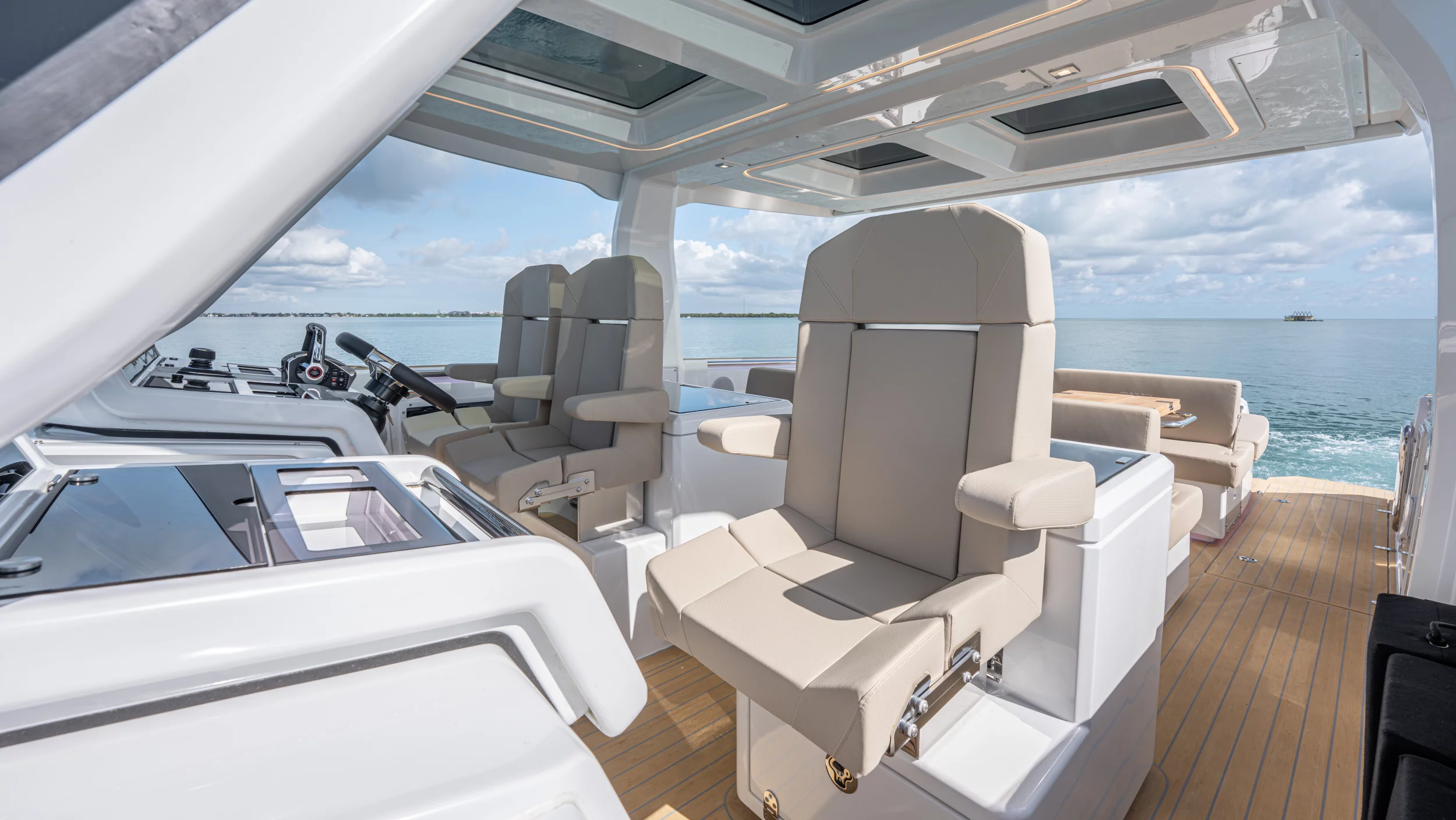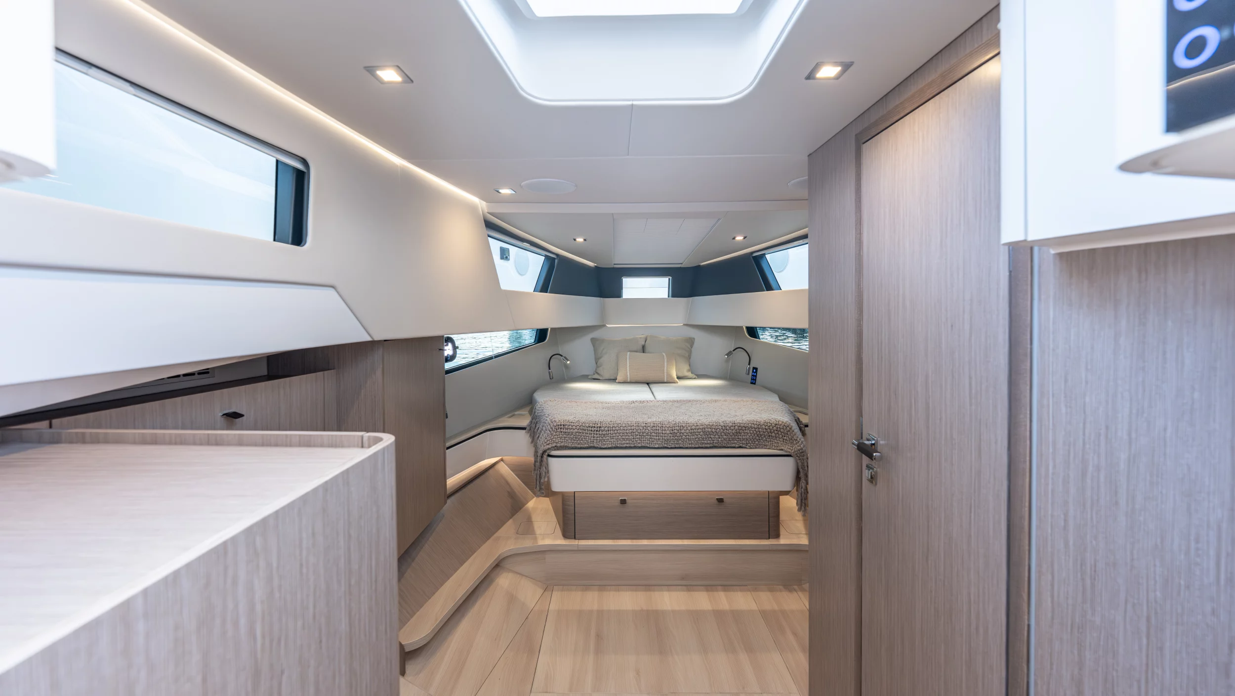 Ihre einzigartige Kombination aus Leistung, Komfort und ikonischem Design aus der Feder des renommierten Yachtdesigners Patrick Banfield macht die neue FJORD 41 XP zum absoluten Highlight auf dem Wasser. Die zwei 600 PS starken V12-Mercury-Verado-Außenbordmotoren der Yacht sorgen für eine atemberaubende Beschleunigung und beeindruckende Geschwindigkeiten von über 40 Knoten. Moderne Navigationsgeräte und eine intelligente Lenkung machen das Manövrieren einfach und intuitiv. Selbst bei voller Fahrt schützten das charakteristische T-Top und verschiedene Windschutzscheiben-Optionen vor den Elementen. Neben der imposanten Power bietet die Yacht ein unvergleichliches Raumangebot und maximale Bewegungsfreiheit an Deck. Das geräumige Cockpit mit seiner bequemen Lounge und zwei großzügigen Tischen schafft den perfekten Rahmen für einen gemütlichen Sundowner oder eine glamouröse Cocktailparty unter der Sonne. Die großen Rumpffenster sorgen nicht nur für einen modernen Look, sondern fluten das Innere der Yacht mit viel natürlichem Licht. Das Interior der 41-Fuß-Yacht beeindruckt zudem mit einer Auswahl von 20 Layoutvarianten. So können Sie Ihren ganz persönlichen Stil verwirklichen. Erleben Sie den Reiz der Geschwindigkeit und ein Höchstmaß an Individualität auf der brandneuen FJORD 41 XP!