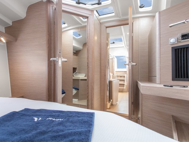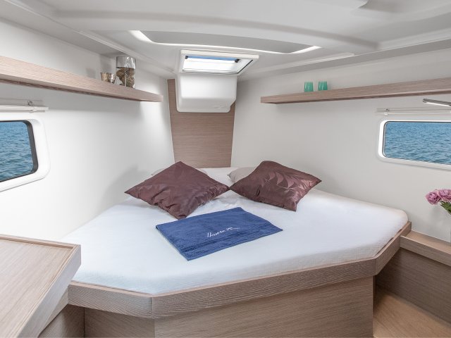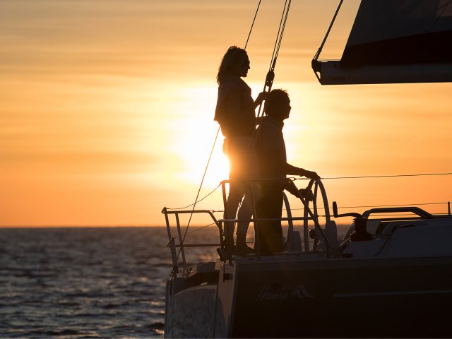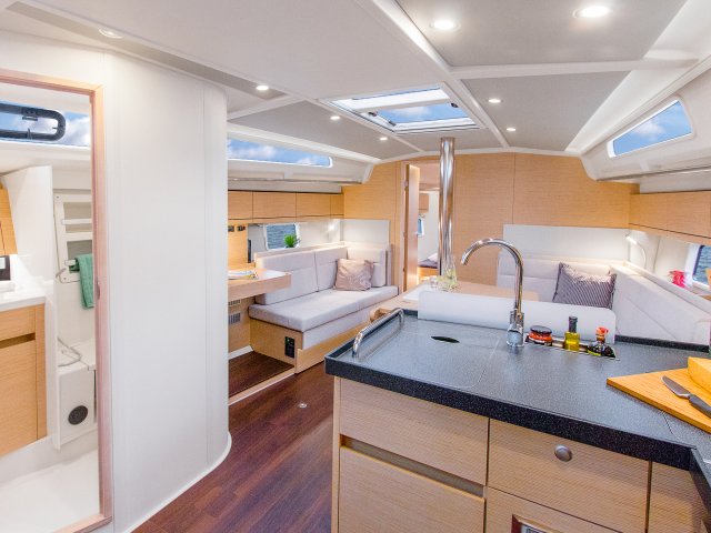Die 41-Fuß-Yacht setzt neue Maßstäbe und macht jede Minute auf dem Wasser zu einem erstklassigen Vergnügen. Die Hanse 418 bietet bis zu sechs komfortable Kojen, darunter eine geräumige Eignerkabine mit en-suite Bad. Im Salon erwartet Sie eine L-Pantry in großzügiger Lang- oder praktischer Kurzversion und ein zweites separates Badezimmer. Zu den Besonderheiten der Hanse 418 gehören neben dem maßgeschneiderten Interieur und dem hohen Rigg auch die zahlreichen Fensterflächen.