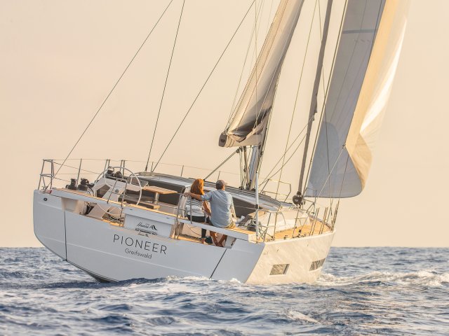 Easy Sailing und Fast Cruising in einer neuen, spektakulären Optik: Die innovative Rumpfform und die perfekt platzierten Kimmkanten sorgen für einen idealen Wasserablauf - ein Garant für uneingeschränkte Performance und Leichtigkeit beim Segeln. Zusätzlich bietet die Yacht die größte Tender-Garage ihrer Klasse – optional mit dem neu entwickeltem Smart Tender-System für ein bequemes Wassern Ihres Beibootes mit nur wenigen Handgriffen. Das renommierte Designbüro Berret-Racoupeau hat auf der 15 Meter Yacht völlig neue Raum-Dimensionen geschaffen. Das in dieser Klasse einzigartig geräumige Cockpit ist der perfekte Ort zum Relaxen mit Freunden und der Familie. Das moderne Design schafft im Inneren ein enormes Platzangebot und bietet viel Raum für Geselligkeit und Privatsphäre. Jeder Bereich ist ein echter Wohlfühlraum - die großzügige Masterkabine mit Ensuite-Badezimmer und die komfortable Crewkabine sorgen mit vielen smarten & hochwertigen Optionen für ein exquisites Raumgefühl. Machen Sie Ihre Hanse 510 zu Ihrem ganz persönlichen Rückzugsort.
