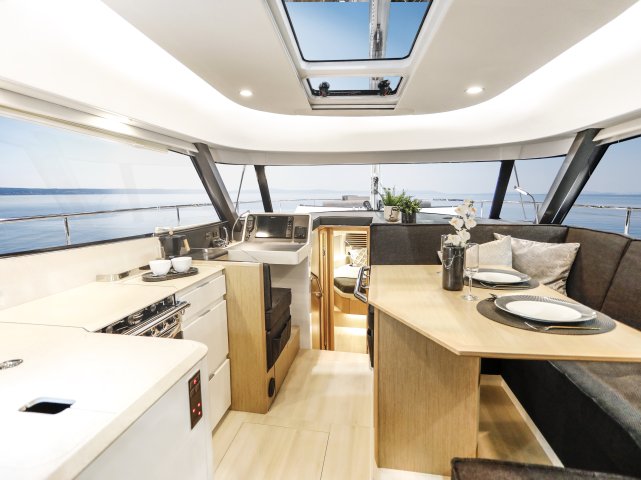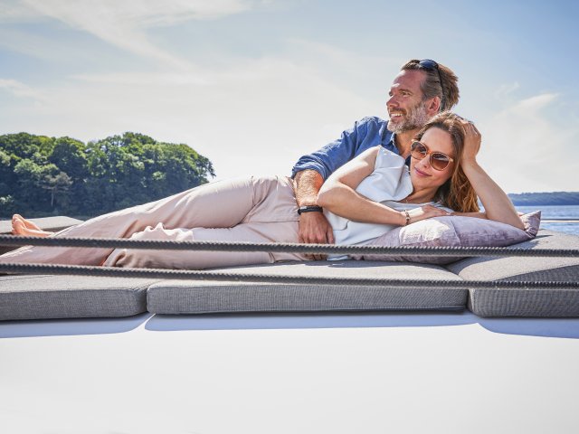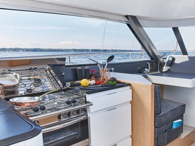 Mit der neuen Moody Decksaloon 41 wurde die Philosophie „Living on one level“ so kompromisslos umgesetzt wie noch nie. Das elegante Deckshaus mit seiner 360° Panoramaverglasung verwöhnt Sie bei allen Wetterlagen mit hochexklusivem Wohnkomfort. Mit ihrer vorbildlichen Allwetter-Tauglichkeit bleibt die Moody Decksaloon 41 ganz der Moody-Tradition verpflichtet. Die neue Moody Decksaloon 41 – ein Meisterstück moderner Bootsbauingenieurskunst.