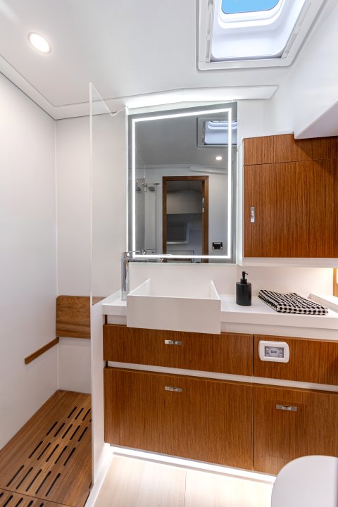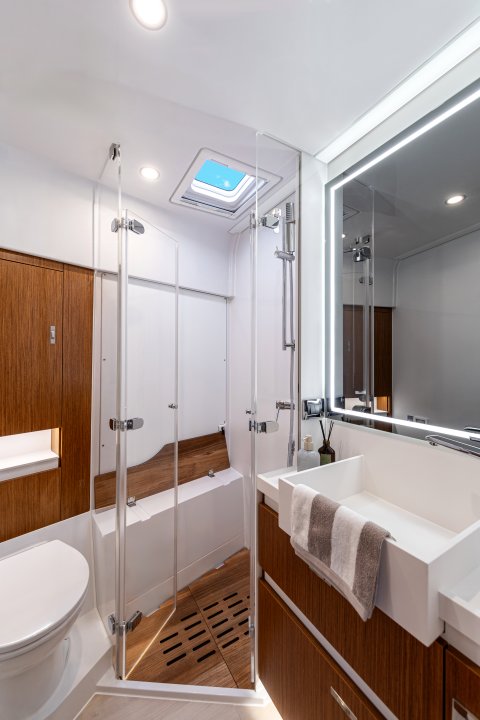 Die Moody DS 48 verkörpert die faszinierende Tradition der britischen Seefahrt und setzt gleichzeitig neue Maßstäbe im modernen Luxus. Die nahtlose Verbindung von Galley, Salon und Cockpit auf einer Ebene schafft ein großzügiges Raumgefühl, vergleichbar mit einem Katamaran, jedoch ohne Abstriche beim Komfort und der herausragenden Segelleistung eines Monohulls. Dank des eindrucksvollen 360-Grad-Panoramablick vom Decksalon aus behalten sie die Umgebung stets im Blick. Die exklusive Vorschiffdinette lädt zu entspannten Momenten ein, ebenso verwöhnt die Moody DS 48 mit einer prächtigen Eignerkabine und zwei bemerkenswerten Gästekabinen. Jede Kabine verfügt über ein eigenes Bad und eine separate Dusche, was luxuriöse Rückzugsmöglichkeiten schafft. Erleben Sie die Moody DS 48, in der Tradition und Innovation nahtlos ineinander übergehen und jedes Detail nach höchsten Ansprüchen gestaltet ist.