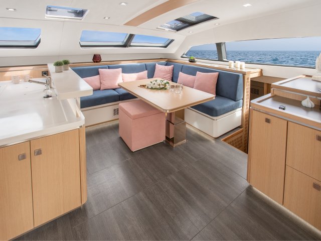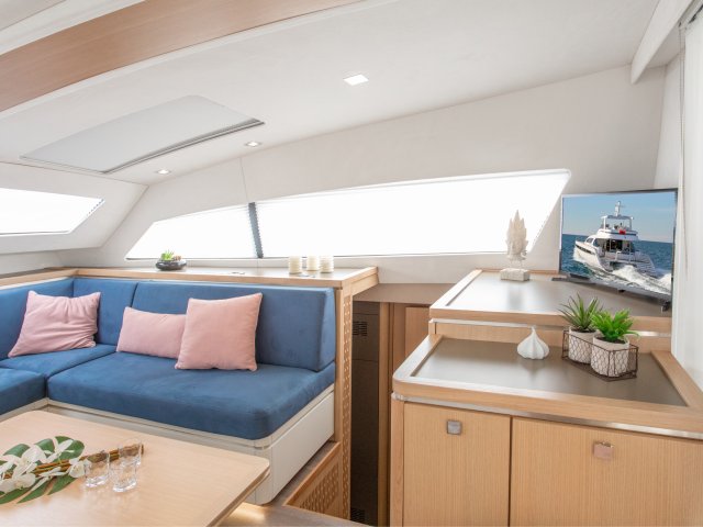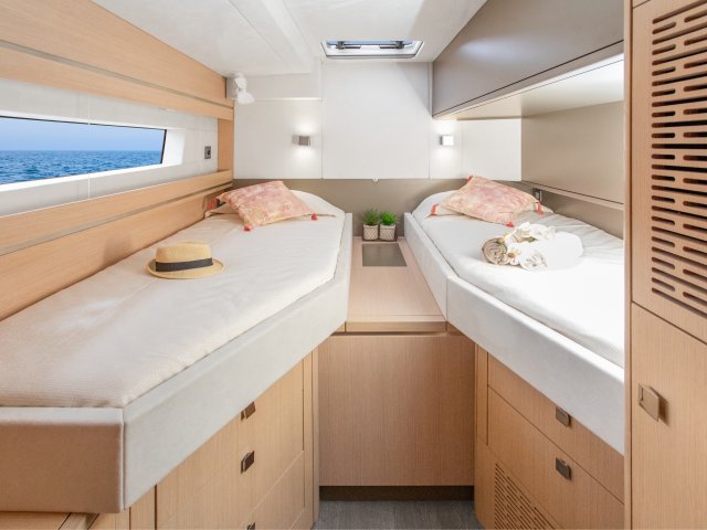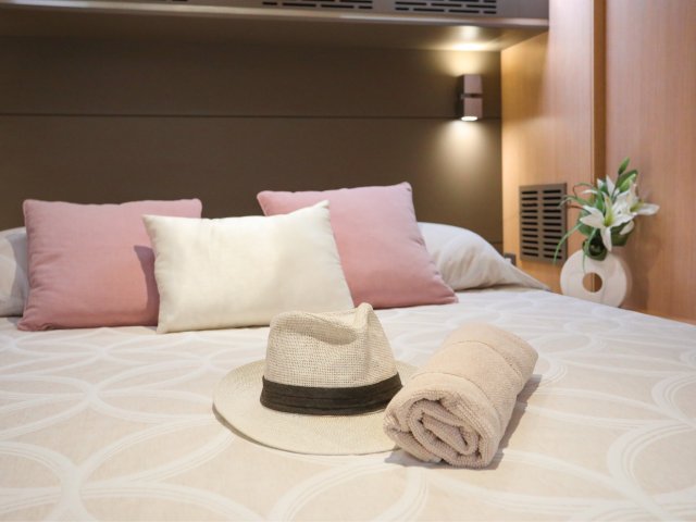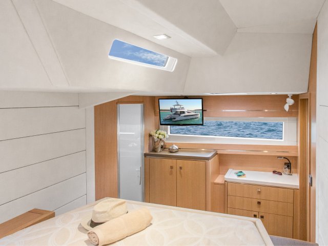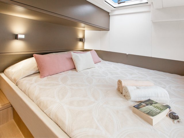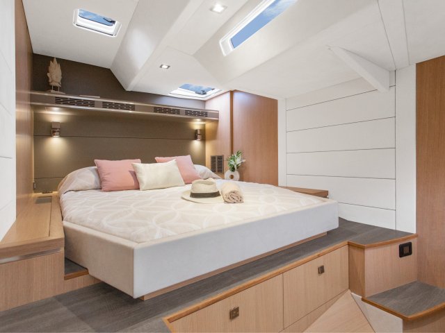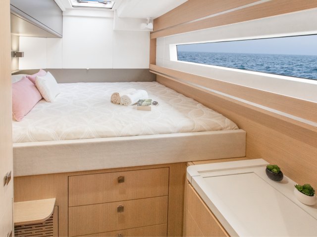 Ihr Zuhause auf See. Wir sind stolz, Ihnen die neue Privilège Euphorie 5 zu präsentieren. Ein optimierter Motorkatamaran mit hervorragender Performance und beeindruckendem Komfort. Die Euphorie 5 wird angetrieben von zwei 220 PS Dieselmotoren für optimales Cruisen auf langen und kurzen Strecken. Die großzügige Eignerkabine befindet sich zentral platziert im Vorschiff. Mit ihrer kompletten Stehhöhe bietet sie größtmöglichen Komfort.