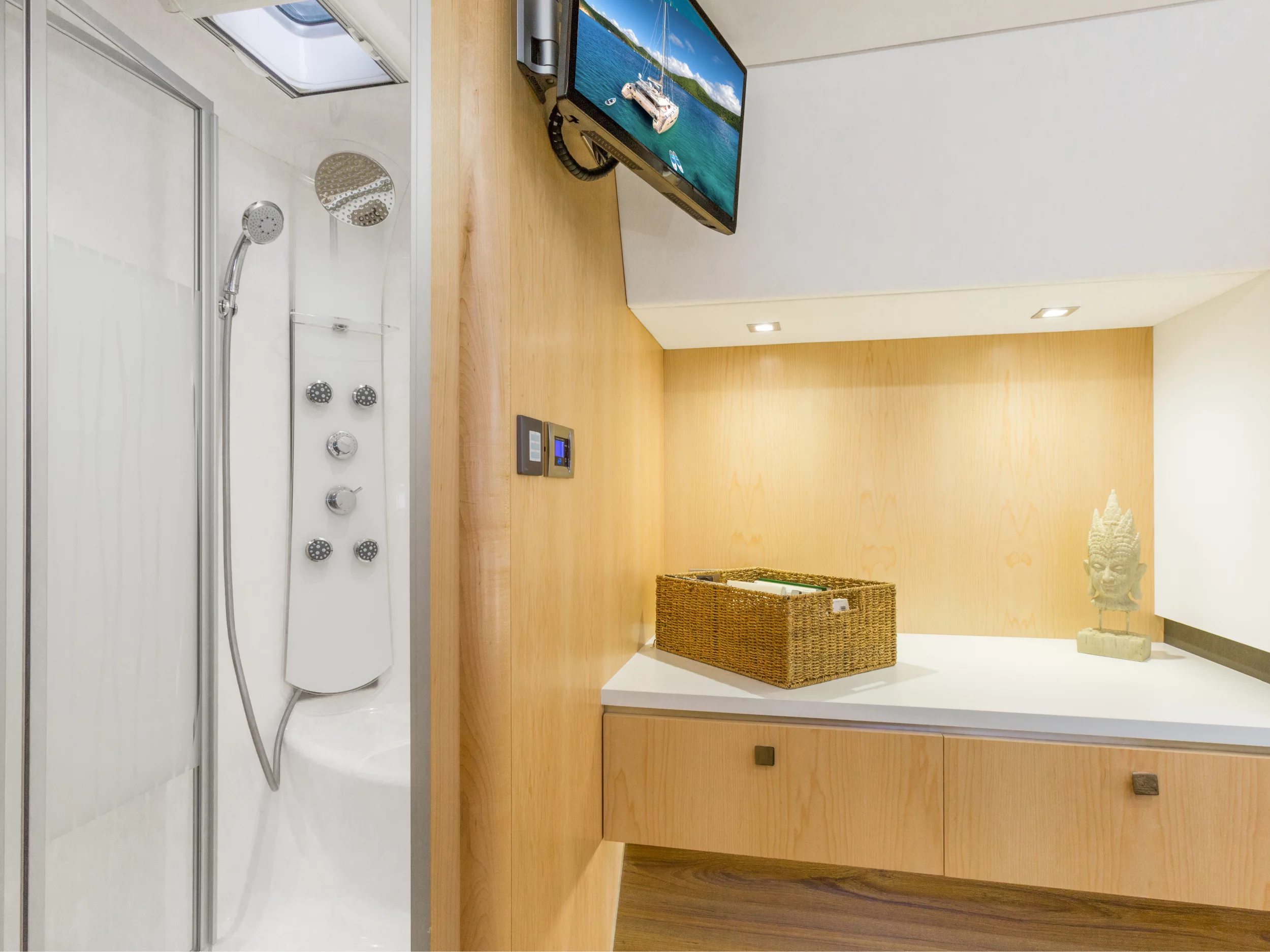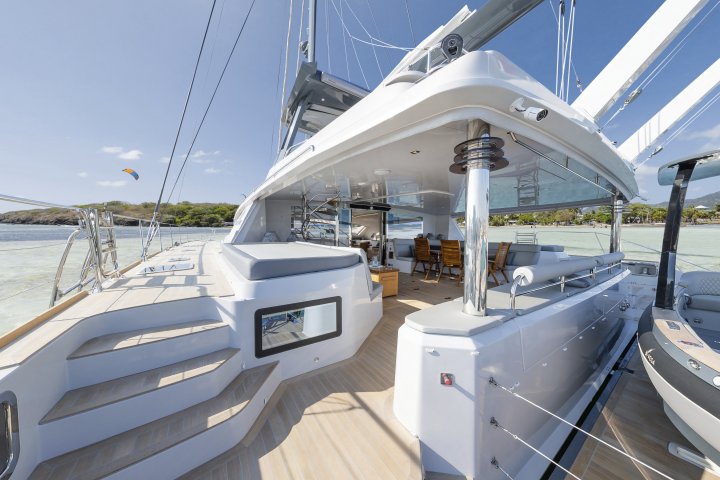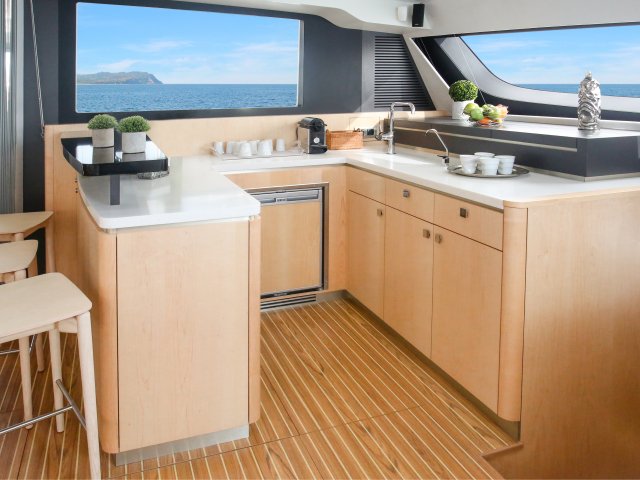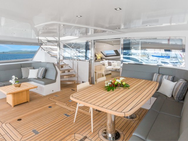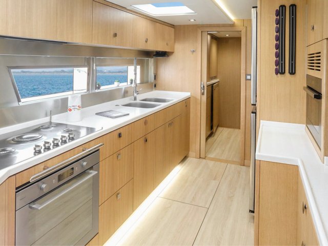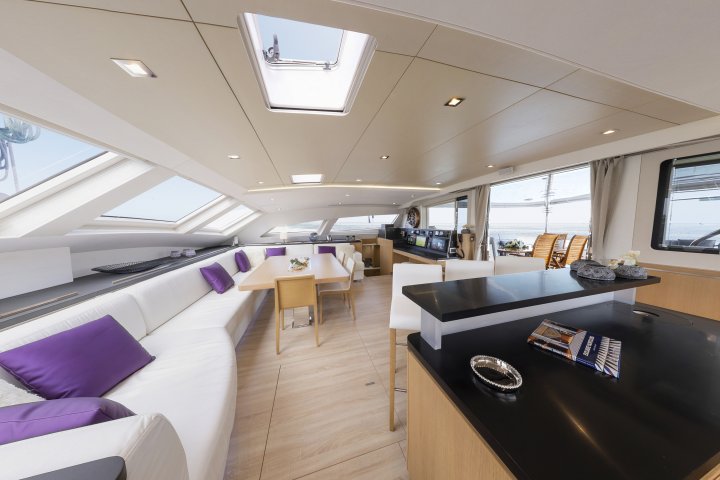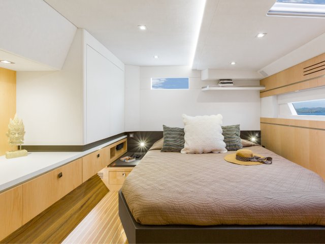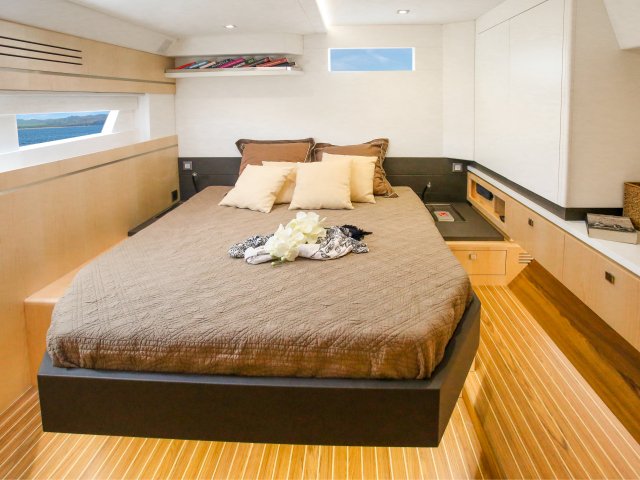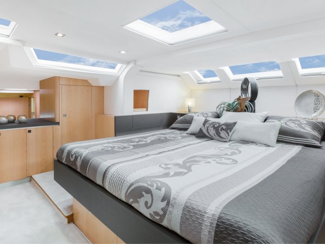 Eine Privilège Serie 740 ist der Inbegriff des Weltumsegelns. Kein anderer Hochseekatamaran aus Serienfertigung kann an dieses einzigartige Meisterwerk heranreichen. Die fast 22 Meter lange Yacht bietet fünf Kabinen mit eigenem Bad. Die zentral gelegene Eignerkabine des Hochseekatamarans ist die größte ihrer Klasse. Auf dem Privilège-Flaggschiff ist schlicht alles möglich: Ob eine Whiskeybar mit Lounge im Salon oder ein Jacuzzi auf der Flybridge, unser spezialisiertes Designteam freut sich auf Ihre einzigartigen Ideen.