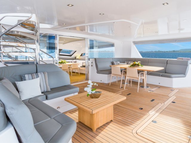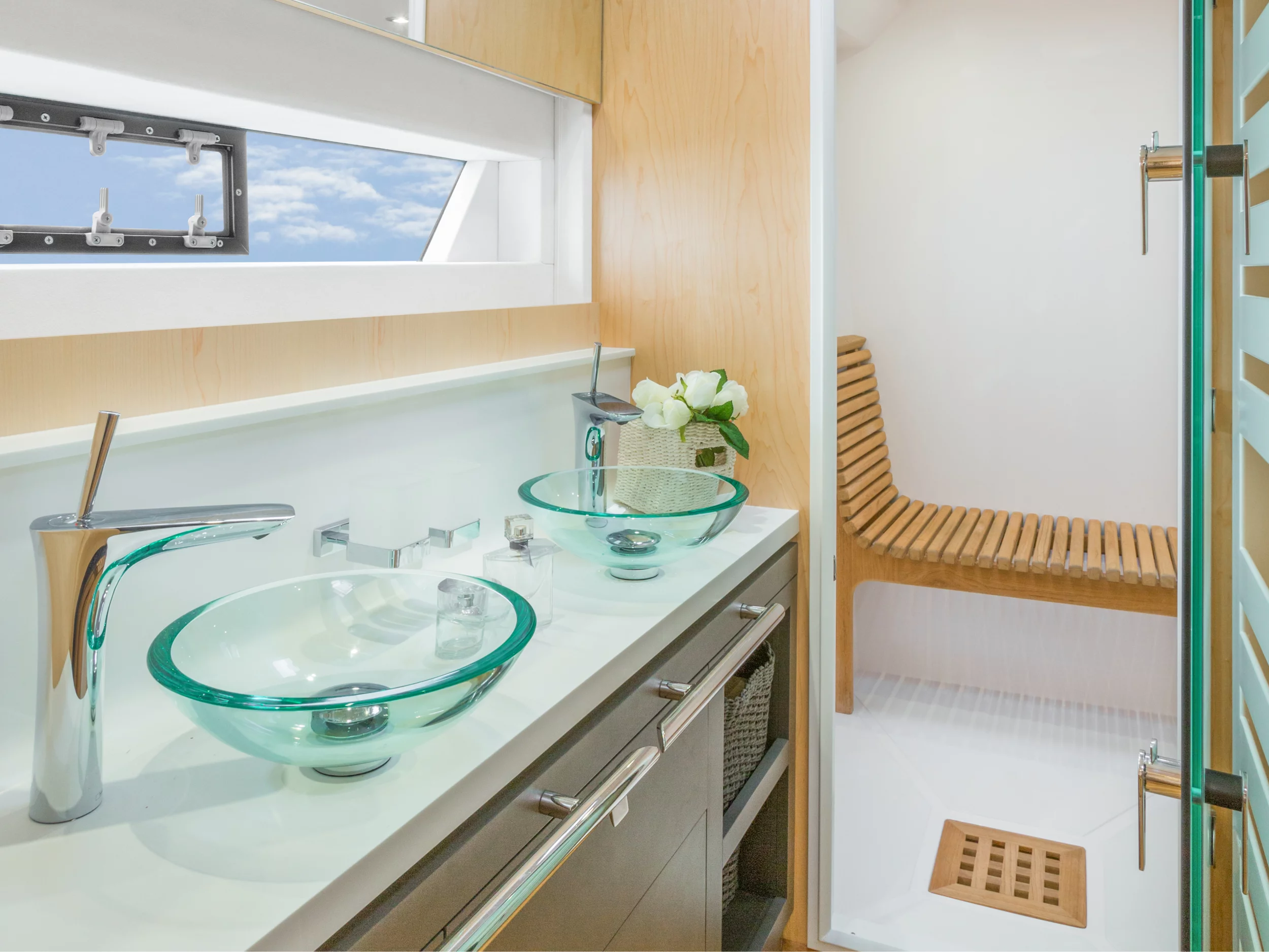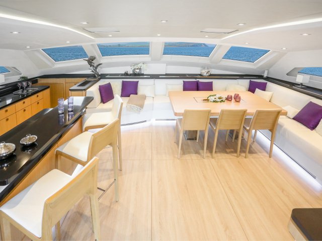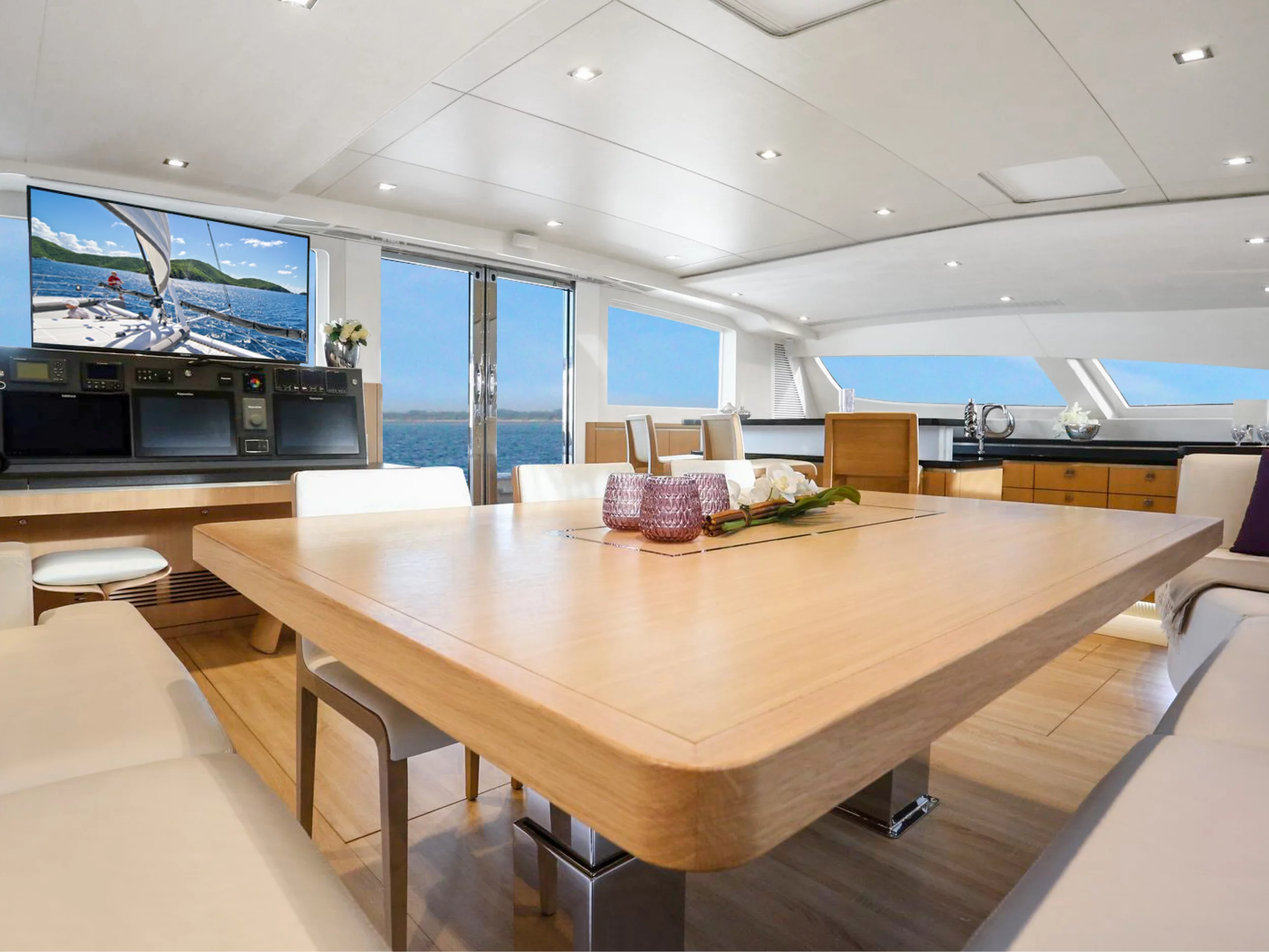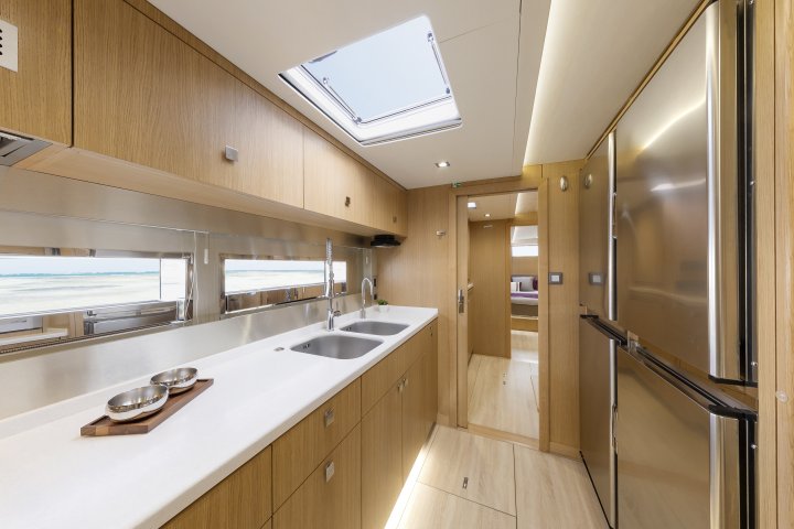 Eine Privilège Serie 740 ist der Inbegriff des Weltumsegelns. Kein anderer Hochseekatamaran aus Serienfertigung kann an dieses einzigartige Meisterwerk heranreichen. Die fast 22 Meter lange Yacht bietet fünf Kabinen mit eigenem Bad. Die zentral gelegene Eignerkabine des Hochseekatamarans ist die größte ihrer Klasse. Auf dem Privilège-Flaggschiff ist schlicht alles möglich: Ob eine Whiskeybar mit Lounge im Salon oder ein Jacuzzi auf der Flybridge, unser spezialisiertes Designteam freut sich auf Ihre einzigartigen Ideen.