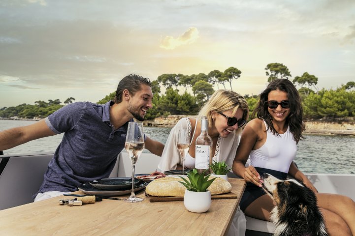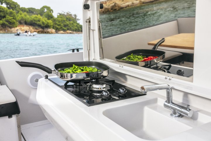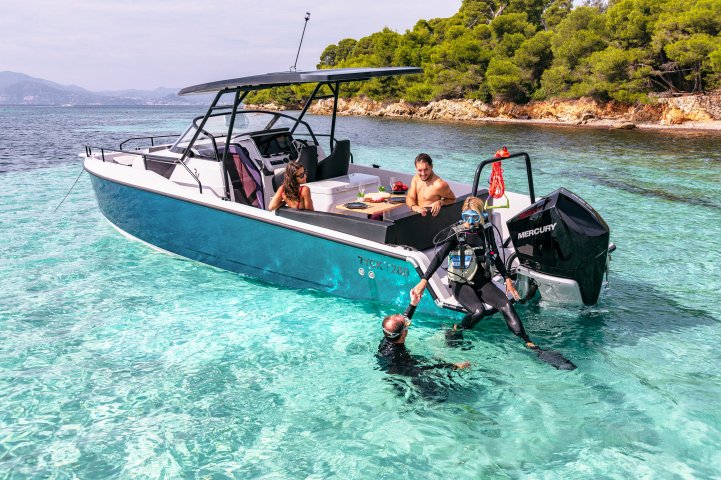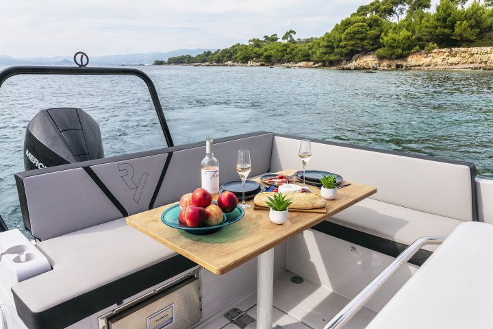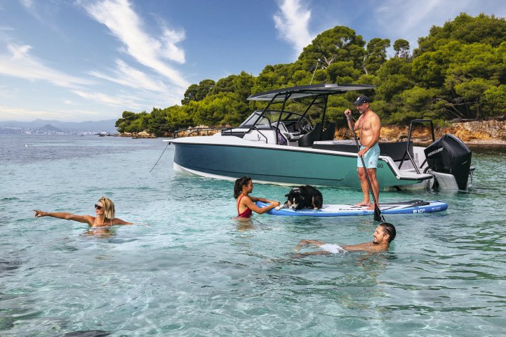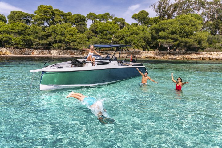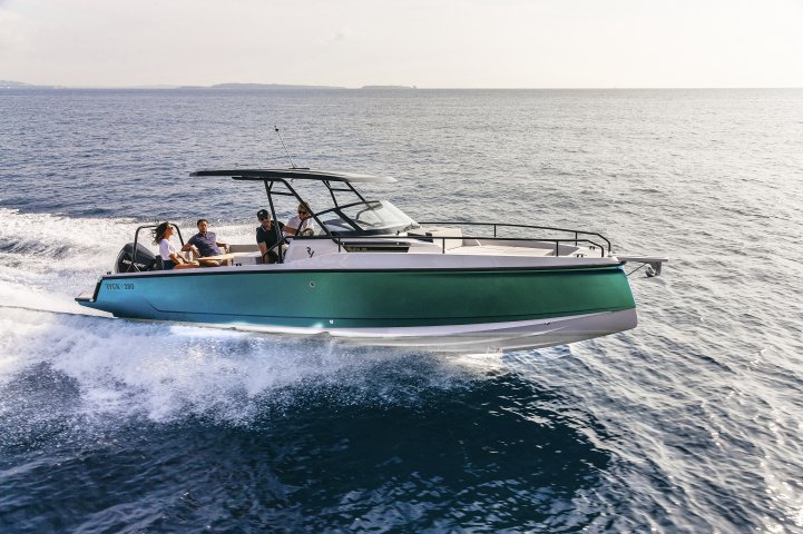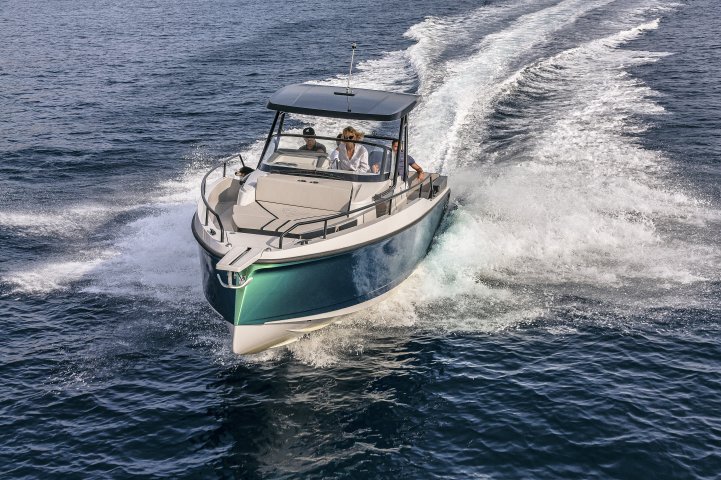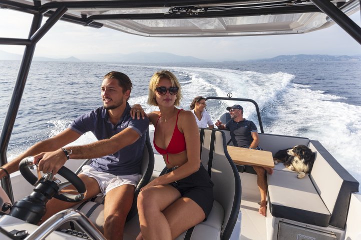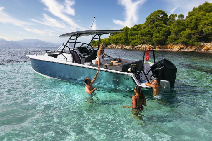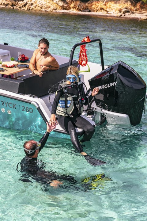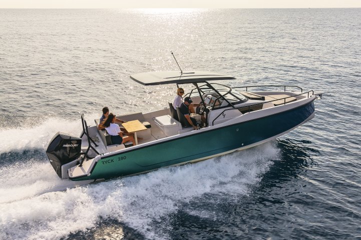 Der erste Eindruck zählt. Das gilt nicht nur beim ersten Date, sondern auch beim Bootskauf. Das Design muss stimmen. Deshalb haben wir für die Entwicklung der offenen RYCK 280 nicht nur das hauseigene Entwicklungs-Team der HanseYachts AG engagiert, sondern auch den renommierten Yachtdesigner Bill Dixon. Entstanden ist ein Styling, das niemanden kalt lässt. Allein der negative Steven signalisiert Dynamik und Sportlichkeit, unterstützt noch durch die Windschutzscheibe und das schwarze T-top, welches den stylischen Steuerstand beschattet. Von hier wird die RYCK 280 zeitgemäß per Touchscreen bedient. Achtern, im größten stufenlosen Cockpit dieser Bootsklasse, ist entweder genügend Platz für das Equipment und die Aktivitäten von Anglern, Tauchern oder Wasserski-Fahrern oder – in einem anderen Layout – für Familien und Freunde zum Relaxen und Sonnenbaden. Unter Deck befindet sich eine luxuriöse lichtdurchflutete Kabine mit veritabler Nasszelle, Schrank und Doppelbett, die durch das angehobene Vordeck luftig und voluminös wirkt. Sie macht die RYCK 280 zum vollwertigen Weekender, mit dem man wunderbar zu zwei- oder dreitägigen Törns aufbrechen kann. In der Revierwahl sind Sie übrigens vollkommen flexibel: Eine RYCK 280 ist trailerbar und kann Ihnen somit überall hin folgen, wo Sie Ihre nächste Auszeit genießen möchten.