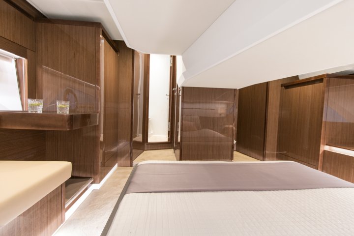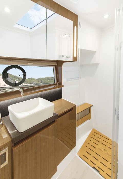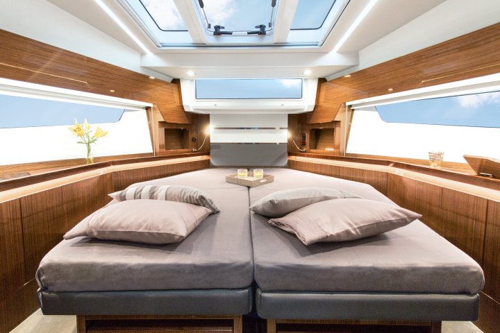 Sonniges Cabrio-Flair und grandioses Raumangebot – dafür steht die SEALINE C430. Ausdrucksstarke Rumpffenster verleihen der Yacht ihr markantes SEALINE-Gesicht und tragen ihren Teil zu revolutionären 26 m2 Gesamtglasfäche bei. Durch Öffnen des elektrischen Schiebedaches holen Sie noch mehr Tageslicht in das Interieur. Mit ihren drei luxuriösen Lounge-Bereichen stellt die SEALINE C430 für jeden Moment das perfekte Ambiente bereit. Wird der Salon geöffnet, verbinden sich Innen und Außen zu einem wirklichen Loft auf See. Das Standardlayout sieht mittschiffs die Masterkabine und eine VIP Kabine im Bugbereich vor. Auf Wunsch sind sogar drei vollwertige Doppelkabinen möglich – perfekt für Törns mit Freunden oder der ganzen Familie.