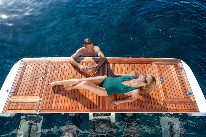 Die SEALINE S390 liefert Ihnen nicht nur das Cabrio-Feeling, um den Sommer auf See zu feiern – sondern auch überragend viel Platz dafür! Freuen Sie sich auf das klassengrößte Cockpit, mehr als 4,5 qm Lounge auf dem Vorschiff, eine XL-Badeplattform und bis zu drei Pantryblöcke an Deck. Alles in helles Tageslicht getaucht, sobald die beiden Sonnendächer geöffnet sind. Das treffende Wort dafür: SUNSATION! Und sollte der Sommer doch einmal Pause machen, spielt das Interieur seinen ganzen Charme aus. Das Layout lässt sich so individuell anpassen, dass Sie unter Deck nichts an Komfort vermissen.